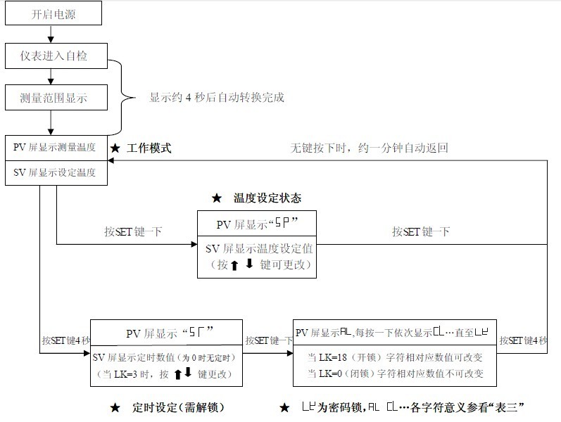 8.1 當設定溫度“SV”接近RT(環境溫度)+ 5℃時,用二次設定方法(見第三章7.2.7 條)